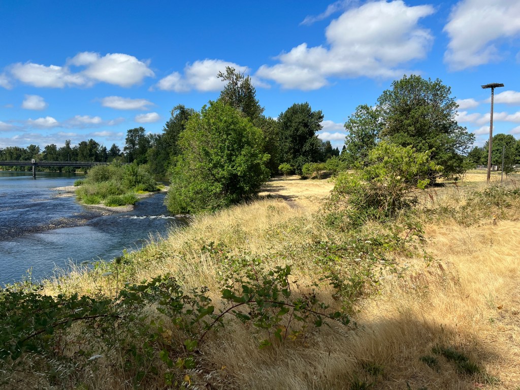 The Owosso nest is next to gentle rapids in the Willamette River (on the right edge of the photo above). The best vantage point to view the nest is in the morning from near the location of the above landscape photo.