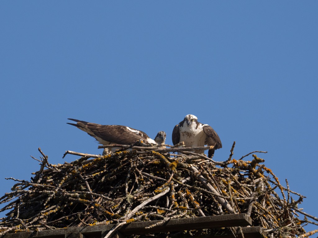 I hope the adult male Osprey brings sufficient fish for all three nestlings to successfully fledge.