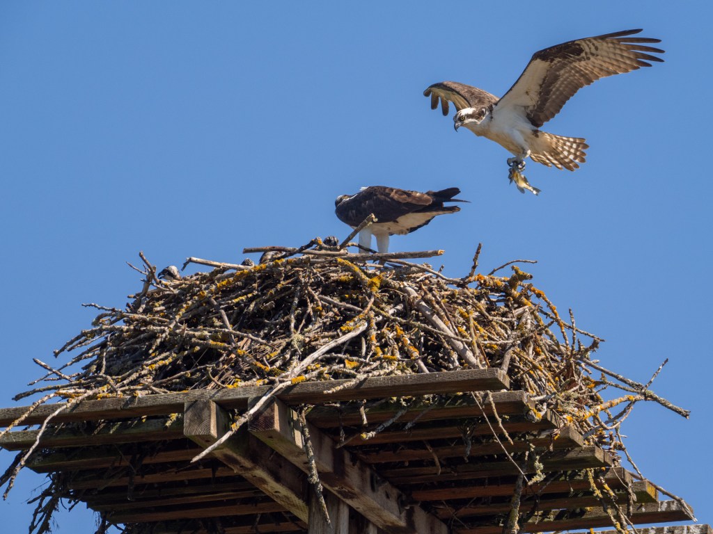 The Boulders male didn’t require coaxing from the female to quickly head back for more fish. Alan Poole summarizes the challenge male Ospreys face after the eggs hatch.