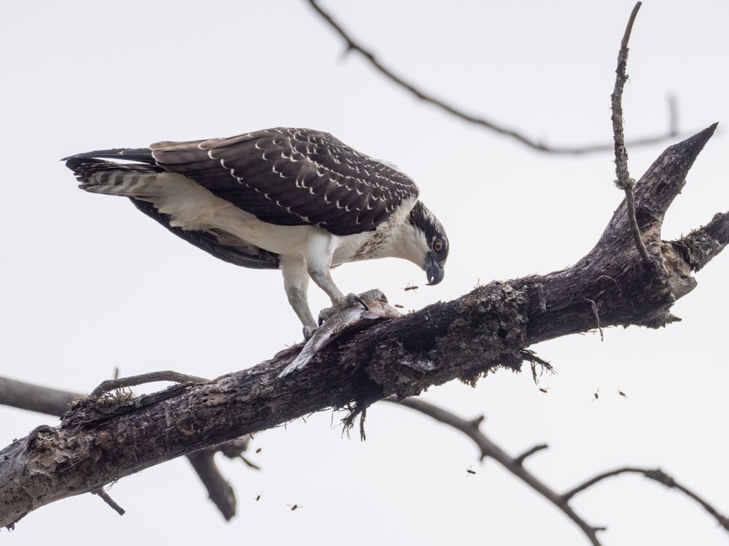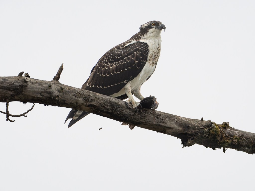 I noticed one of the juvenile Osprey feeding on a fish in the tall snag along the river on the afternoon of September 28. I am confident that this individual is now competent to fish for herself.