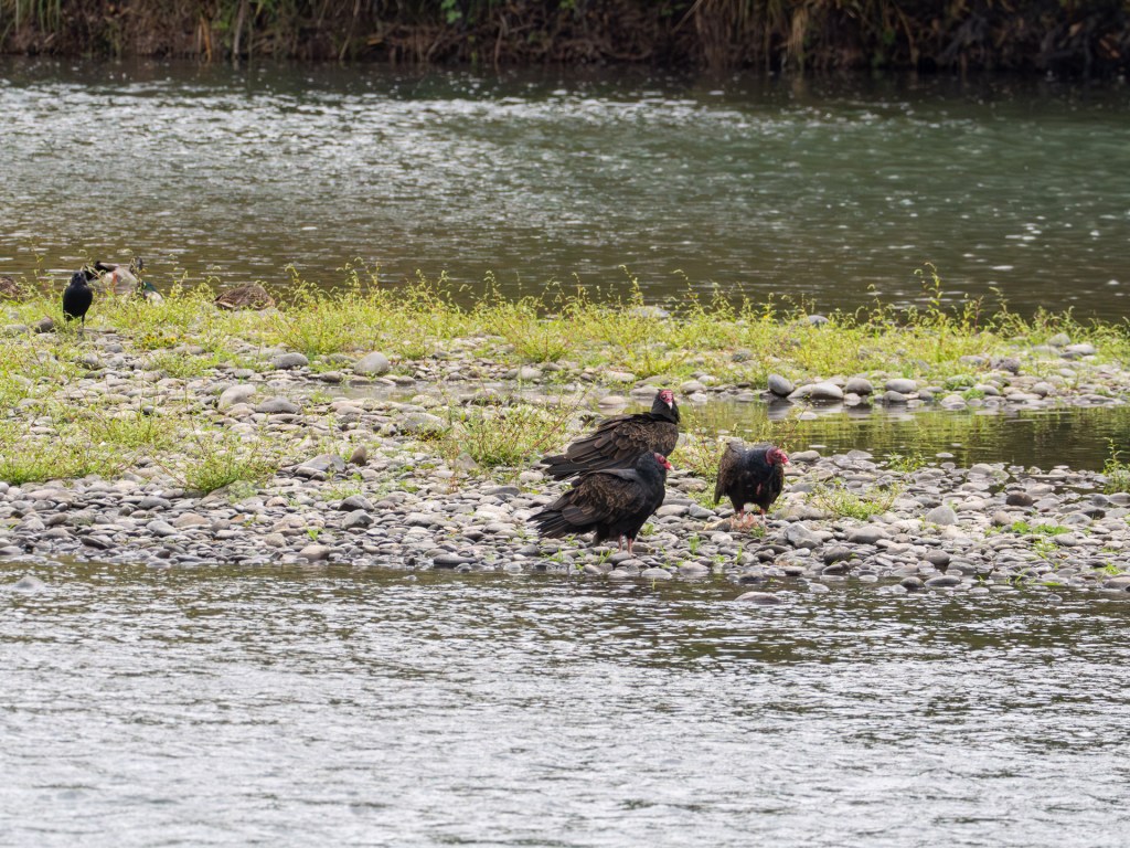 On an afternoon walk on September 29 we noticed two groups of Turkey Vultures eating the remains of fish on gravel bars in the river.