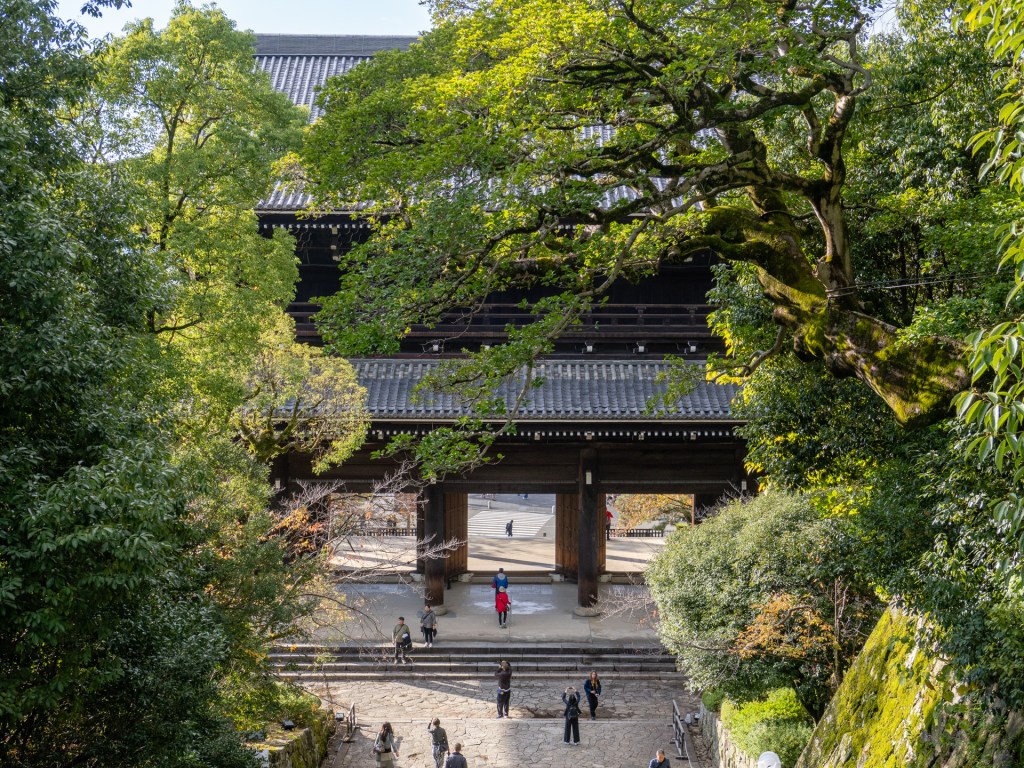 The photo above is from atop a long, steep staircase, looking out on a massive gate leading into the Chion-in temple complex. The Kyoto resident Alex Kerr describes this and the many other types of gates to be seen in Kyoto.