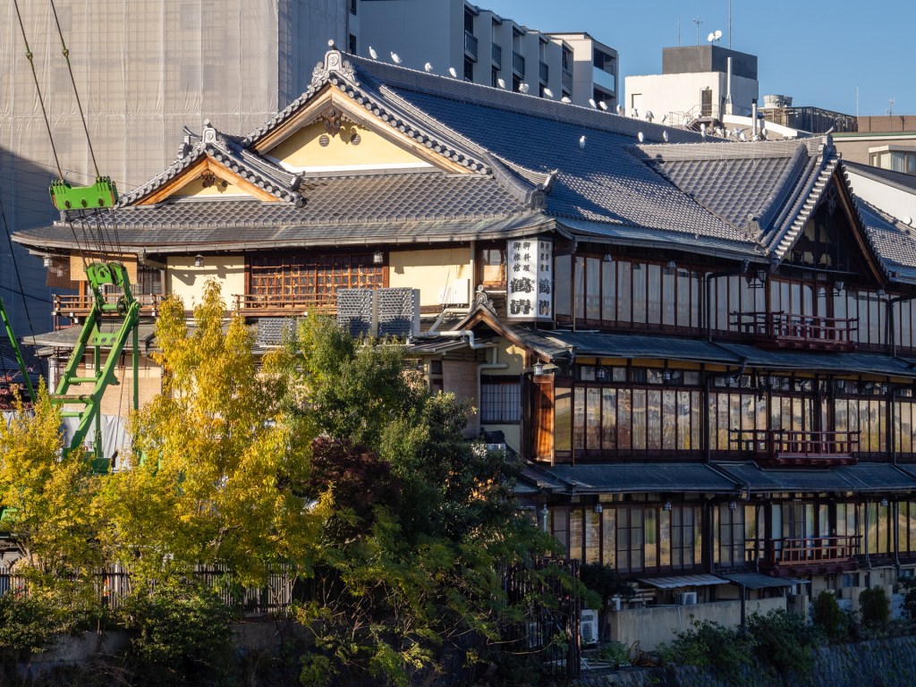 A third type of heron that lives along the Kamo River is the Little Egret (Egretta garzetta); in the photo above, more than twenty are standing on the top of the roof of the Tsuruse restaurant and inn.