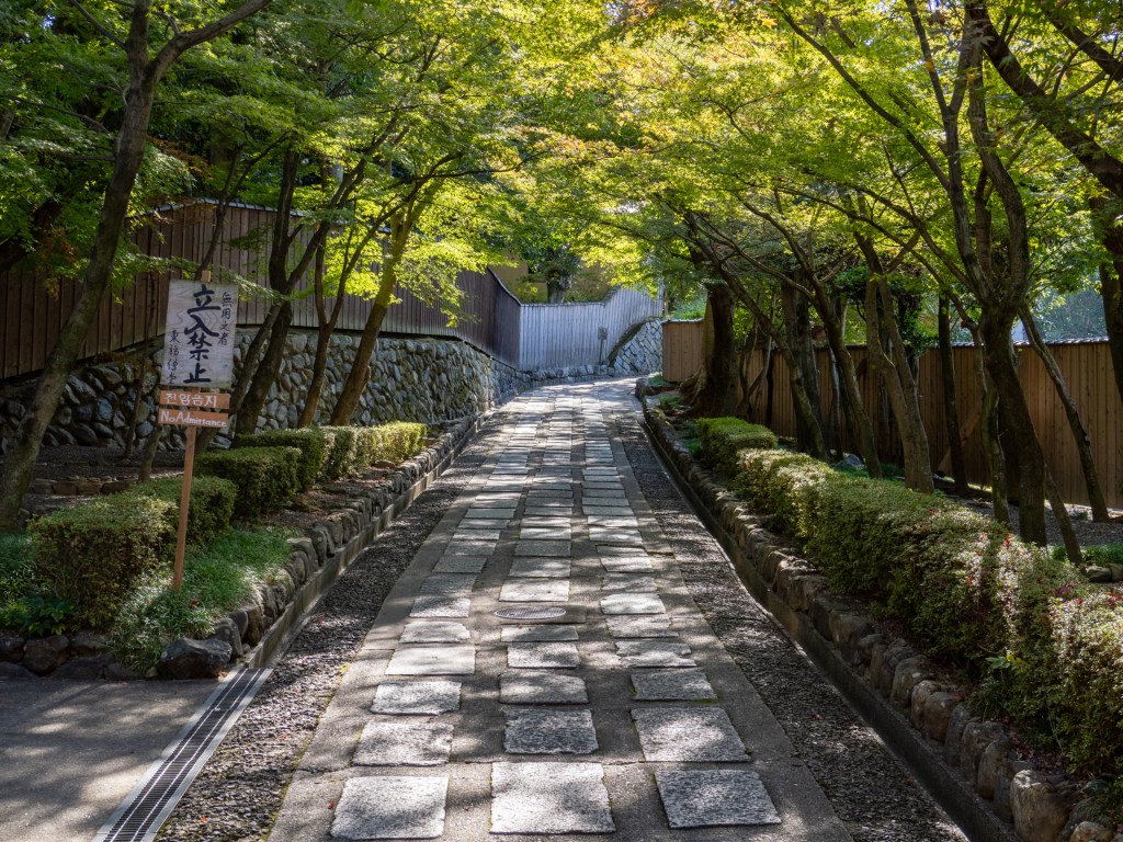 Tofuku-ji, founded in 1236, is one of the five great zen temples in Kyoto (the ‘five mountain system’). Tofuku-ji is about a 30-minute walk from our hotel, and we have visited previously. The image above is a quiet side-path leading to the private area of the temple (thus, the stern “No Admittance” sign).