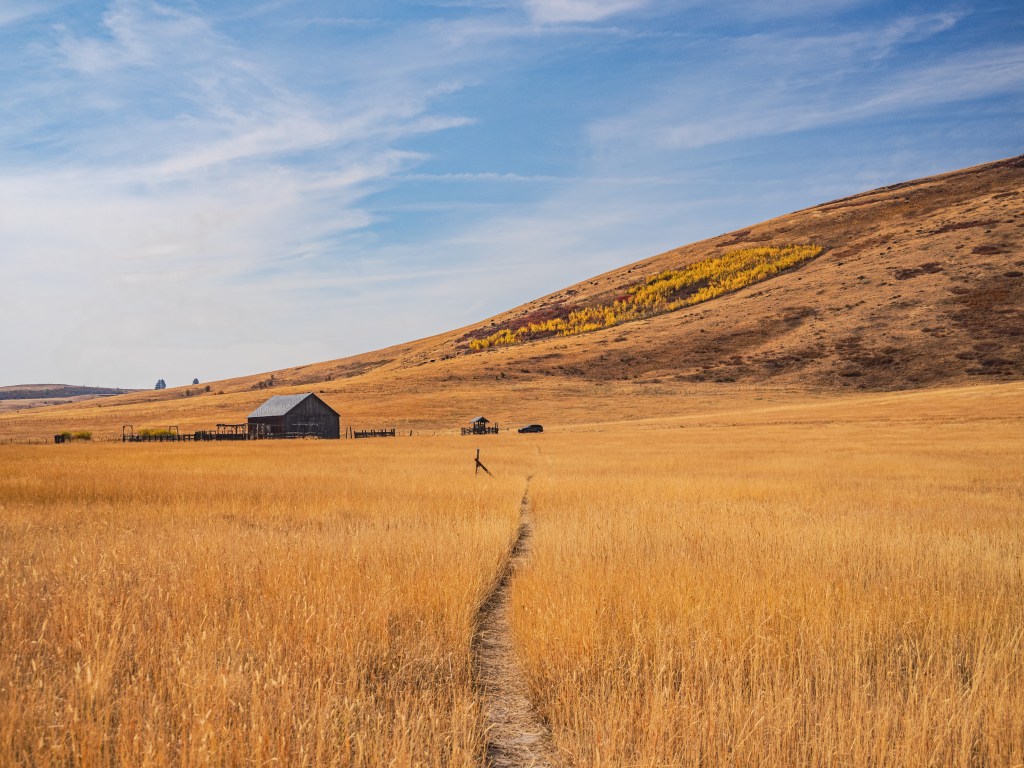 We hiked one of the narrow trails cut through the prairie leading from Duckett’s Barn, pictured above, occasionally climbing short ladders over barbwire fences. This remote location imparts a sense of spaciousness where the natural sounds of wind and birdsong are undisturbed by motor vehicles.
